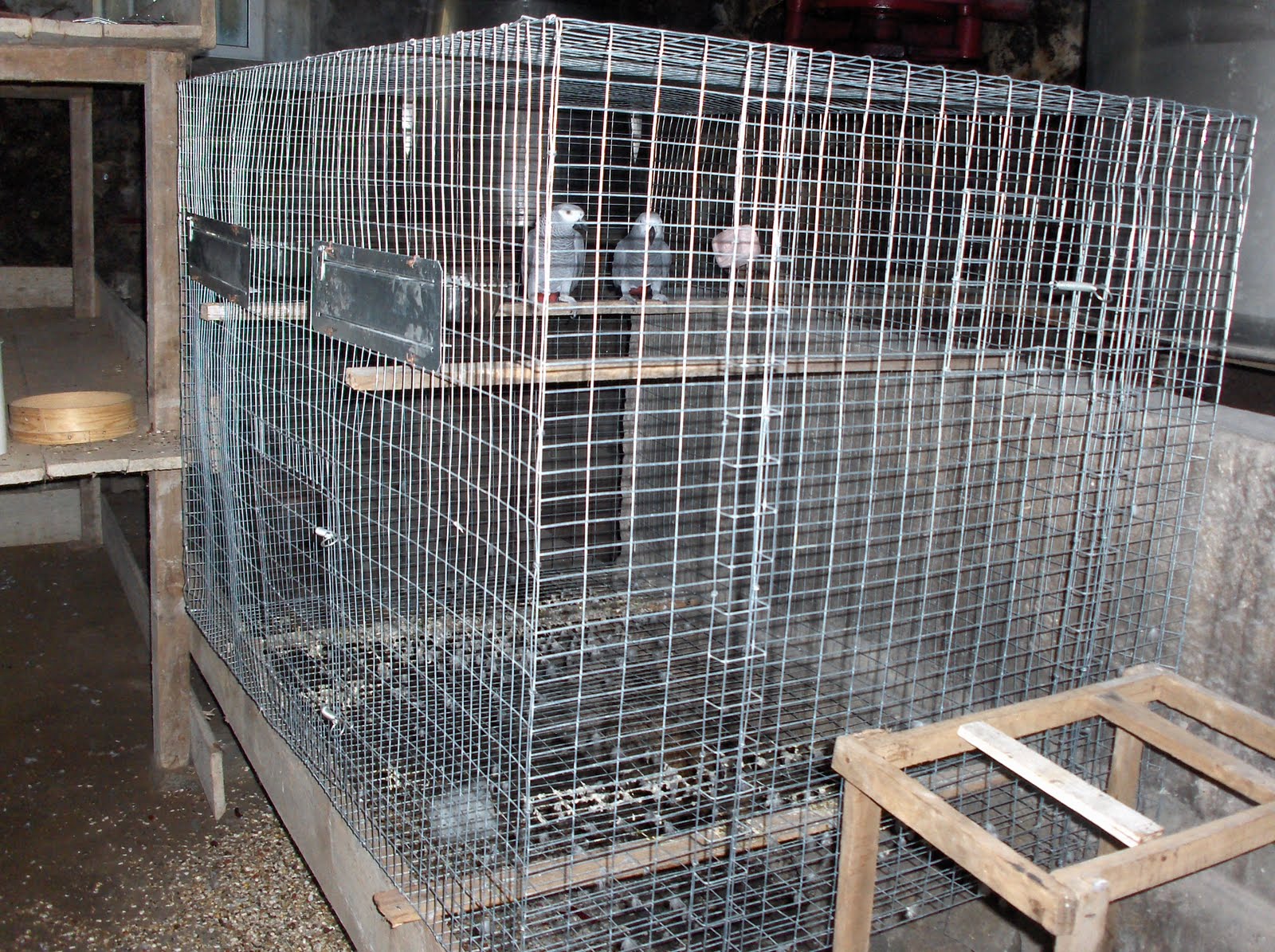 Casal de papagaios cinzentos de cauda vermelha. Fêmea criada à mão e muito mansinha. Macho criado pelos pais, mas praticamente domesticado e também muito manso.